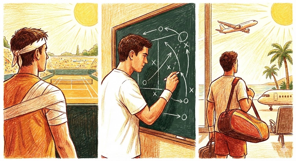 2. 環境要因:ベトナムの大会は高温多湿のアウトドア・ハードコートです。炎症を抱えた肩や、調整不足の身体には過酷な条件であり、復帰の舞台として選ぶ合理性は低いです。
