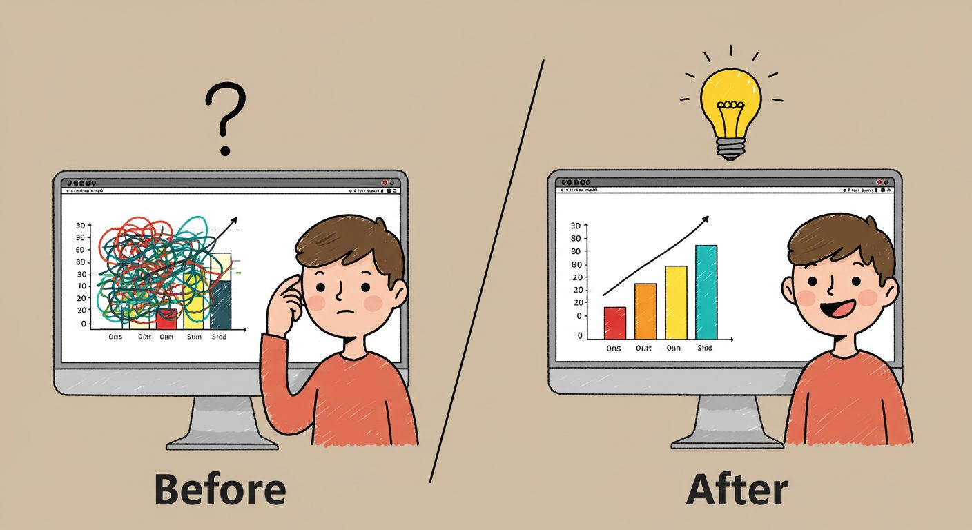 見にくいグラフは、せっかくのデータ分析の結果を正しく伝えられず、誤解を招いたり、意思決定を遅らせたりする原因にもなりかねません。