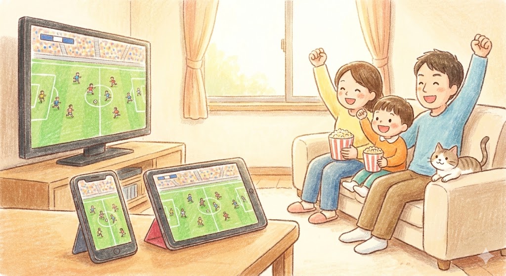 「メインはテレビの大画面、手元のスマホでSPORTS BULLを開いてスタッツ確認、移動中はTVer」という使い分けが、現代の最強の観戦スタイルです。