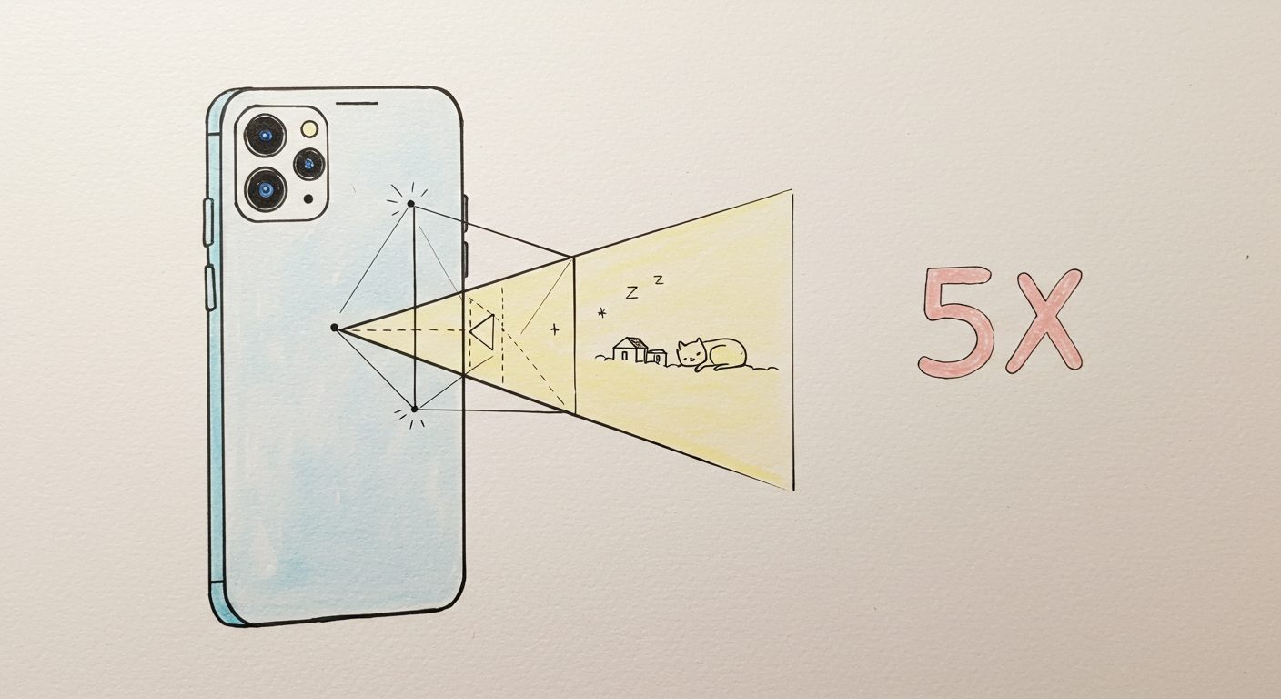 iPhone 16 Pro / Pro Max(およびiPhone 15 Pro Max)の光学5倍ズームを実現しているのがテトラプリズムレンズです。これは、光を4回反射させることで、センサーまでの距離を長く稼ぎ、レンズユニット自体の厚みを抑えながら高倍率の望遠を実現する技術です。この革新的な技術により、スマートフォンの薄さを維持しながら、強力な光学ズーム性能を搭載することが可能になりました。iphone 光学 ズーム 比較を行う上で、この技術の有無はProモデルを選ぶ大きな理由の一つとなります。