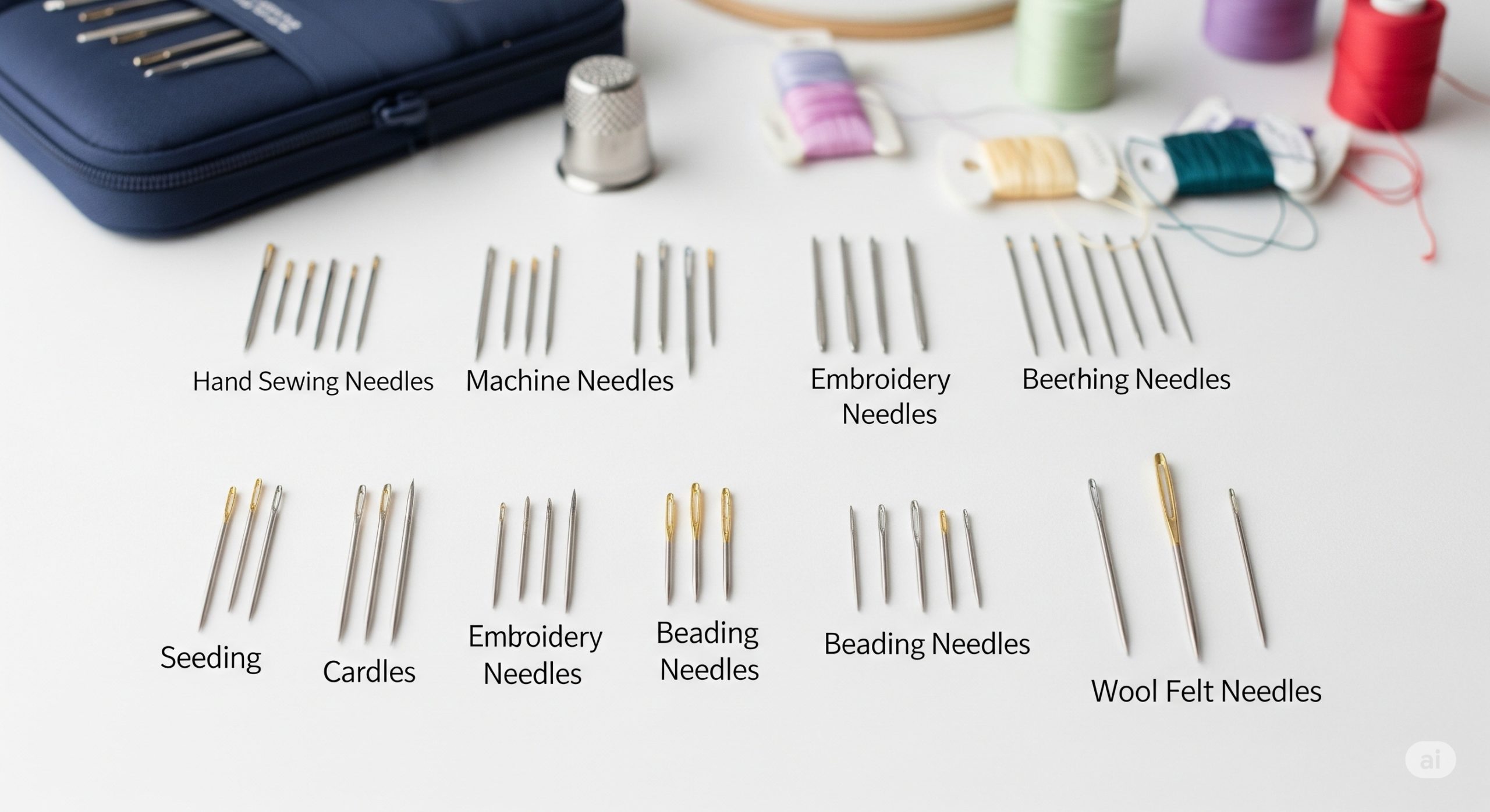 また、手縫い針、ミシン針、刺繍針、ビーズ針、羊毛フェルト用ニードルなど、用途に合わせてさまざまな種類のニードルがあることもご理解いただけたと思います。