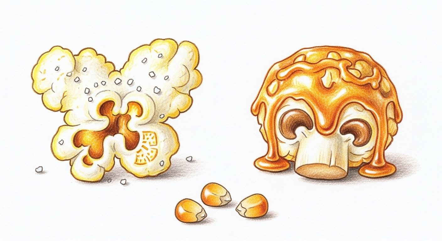 ポップコーンが弾けた後の形には、2つの基本タイプがあります。この違いを知ることが、ポップコーンマスターへの第一歩です。