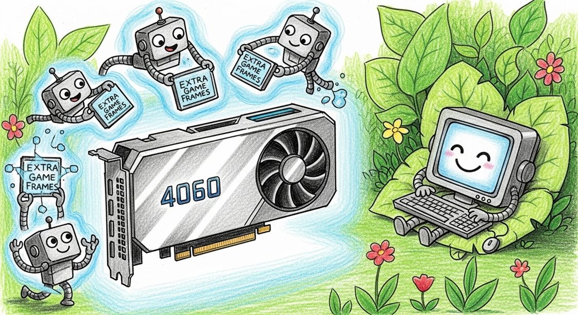 これは、AIがゲーム画面の過去のフレームと現在のフレームを解析し、その間の動きを予測して、全く新しい「中間フレーム」をGPU単独で創り出してしまう技術です。