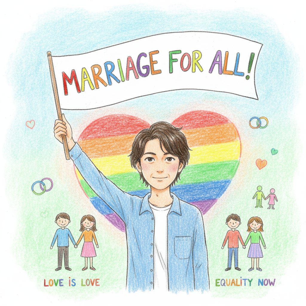 これは、現行の日本の法律では同性同士の結婚が認められていない現状に対する、彼の切実な願いです。