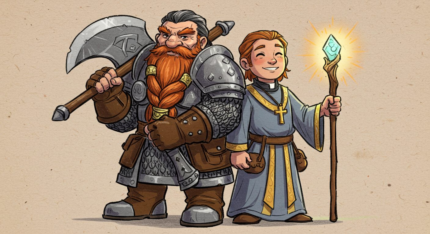 寡黙なドワーフ戦士と陽気な人間僧侶。
