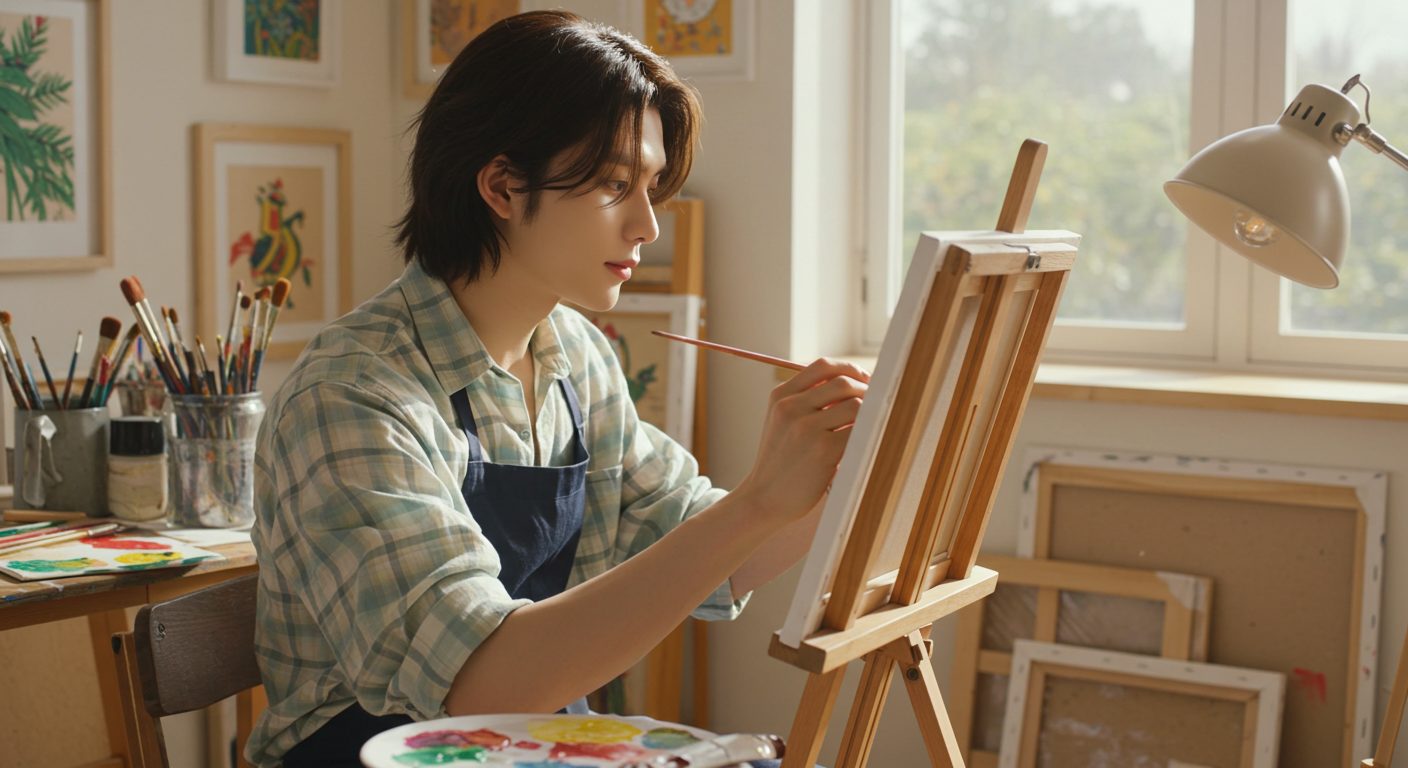 彼の才能はダンスやパフォーマンスだけじゃなく、絵を描くことでも発揮されているんだ。